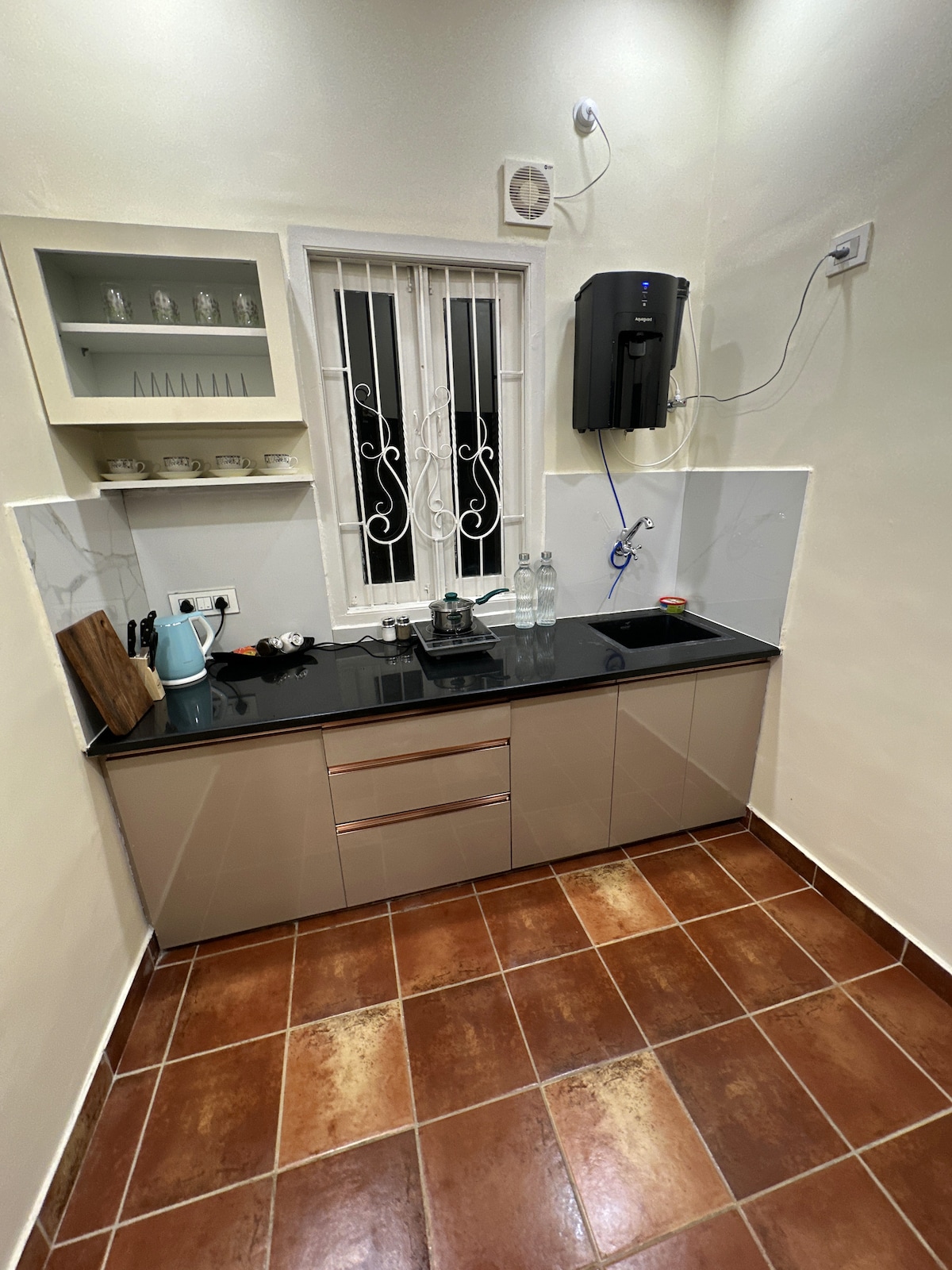 Relax with the whole family at this peaceful place to stay. a better choice for quick stays. have all the amenities required for the couples & elders. equipped with dedicated work table facility. equipped with seperate dinning/tea table for 2. wake fit queen size bed for comfort & relaxed sleep. bed spreads, pillow covers are hygienic & washed on daily basis. kitchen is equipped with basic cooking tools & utensils. additional items are available on request. geyser facility in the bathroom.