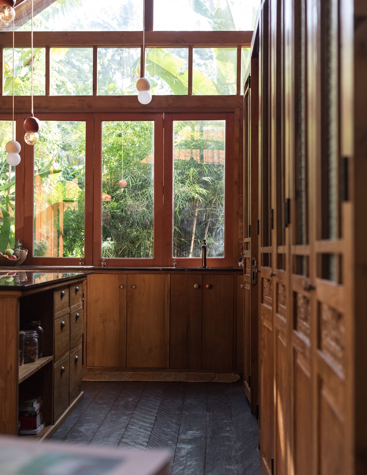 The private Ayung Panorama house frames phenomenal, ever-changing panoramic view across the lush Ayung River gorge towards the Ubud rice fields. Perched on expansive, private terraced grounds owned by a Balinese royal family, and situated on top of a cliff along the Ayung River Gorge. The sound of birds and the river rapids is a constant presence. A river breeze blows through the house. A sunrise to wake up to! It is a unique and inspiring place. It is magical. It is mystical. It is ephemeral!