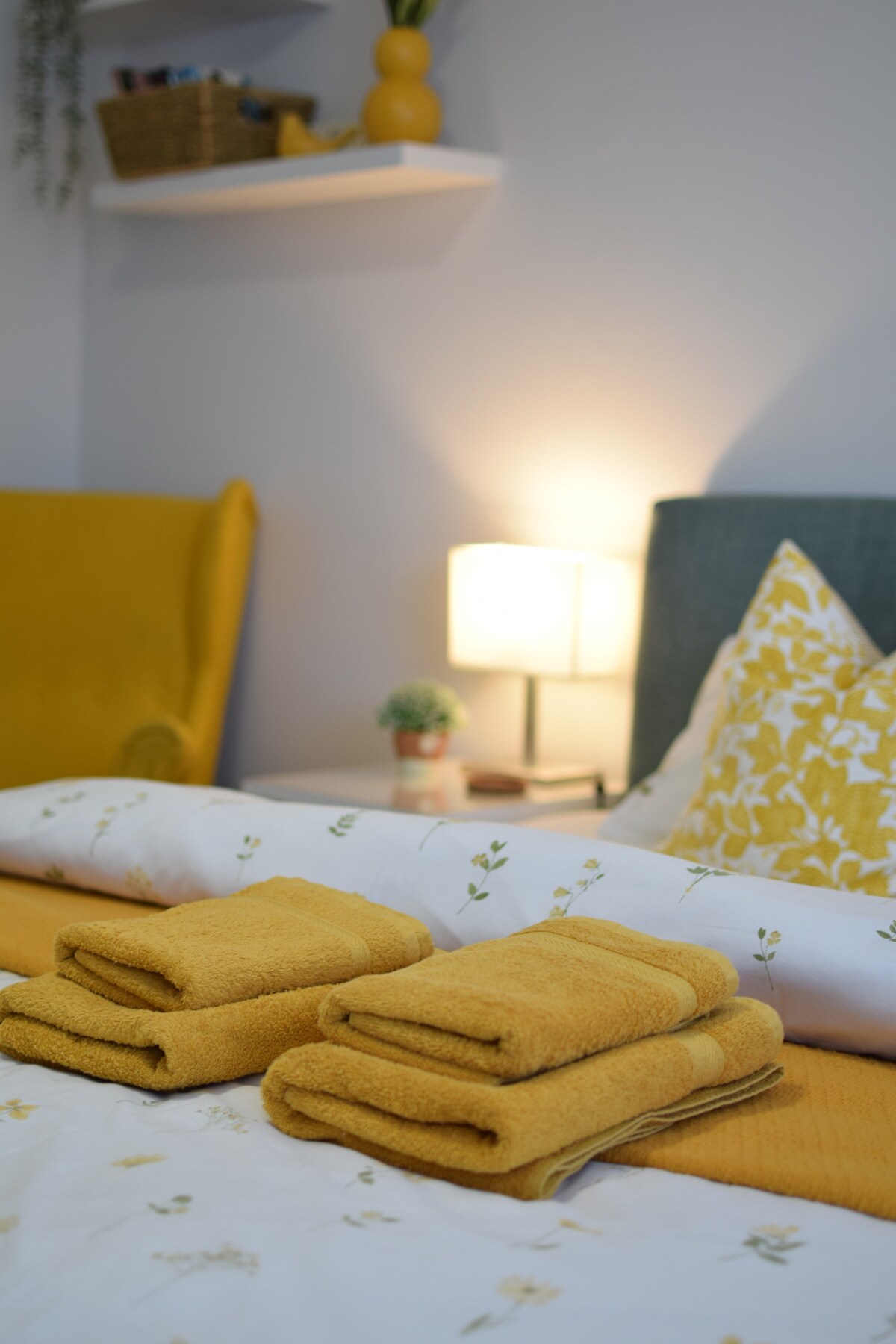 Modernly designed apartment ideal for couples or business travelers who want comfort, peace and proximity to the city. A spacious living room with a comfortable sofa, a smart TV and a work desk, ideal for relaxation or a productive work environment. Fully equipped modern kitchen with all necessary appliances and utensils for preparing meals. A comfortable bedroom with a double bed and luxurious bedding. Discreet ambient lighting contributes to a relaxing atmosphere.