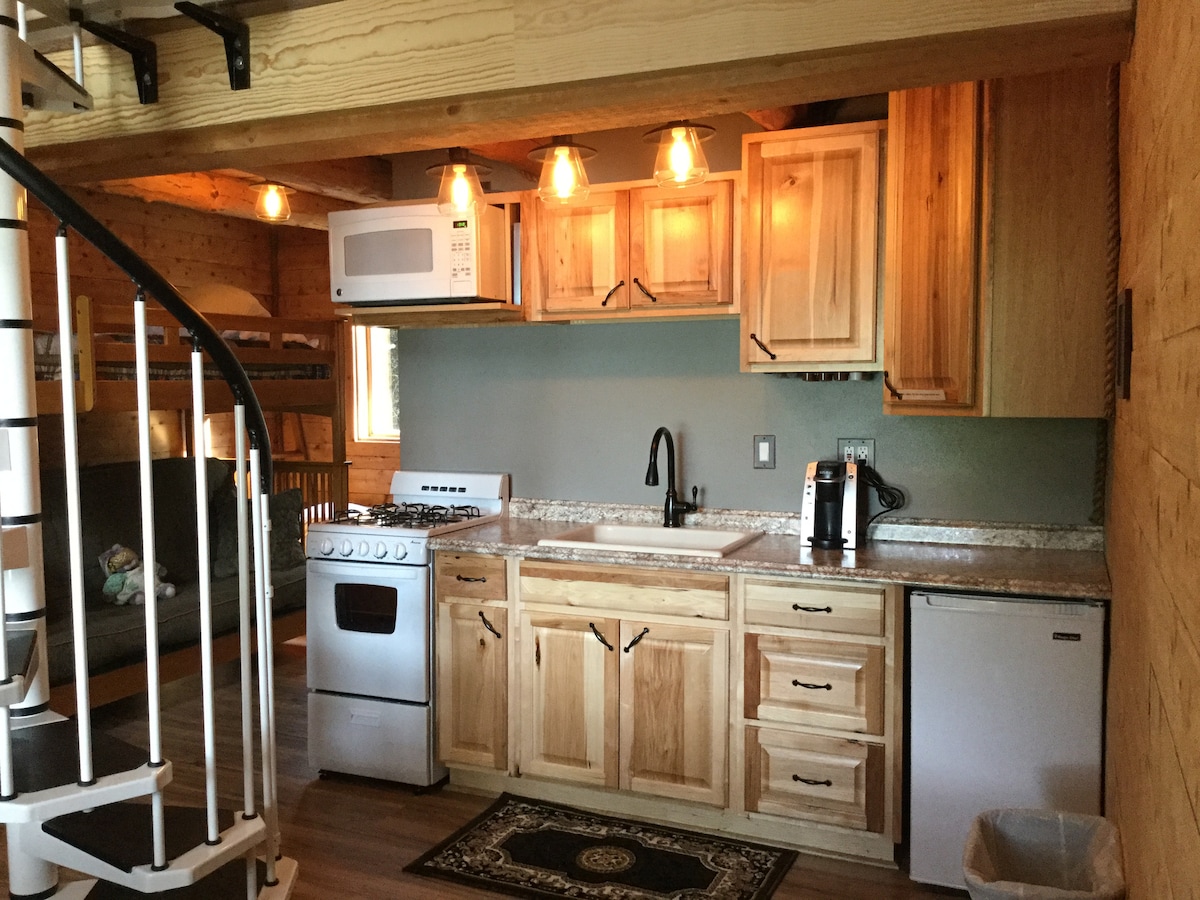 Built by Alaskan gold miners in the early 1900’s, the Bear Cub Cabin was reconstructed in 2016. Nestled in the beautiful Chugach National Forest with towering Alaskan mountains right at your doorstep. This historical cabin is clean, cozy and perfect for a couple looking to experience the many activities of the Kenai Peninsula. Perfectly located close to the beautiful seaside city of Seward, world-class king salmon fishing in Cooper Landing, and the charming town of Moose Pass.