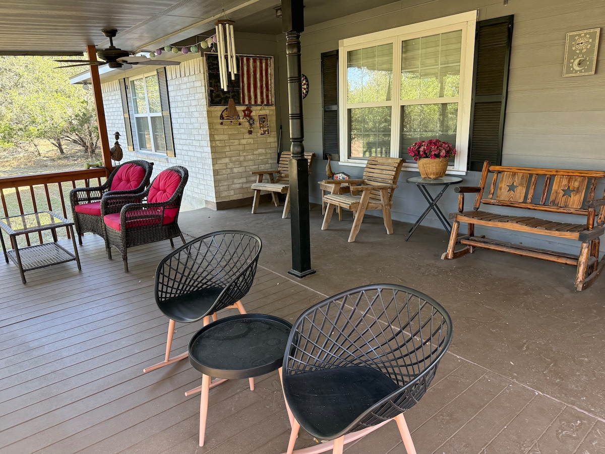 Enjoy watching deer, birds, sunsets, stars and relax. Pet friendly, 2 pets max, fast wifi, Casita on the Ranch 2, a gated private home nestled in the oaks on our 90 acre ranch near the main home. Enjoy your own fire pit, charcoal grill & relaxing on the porch. Lots of room for the kids to run and play. We are 20 min to Canyon Lake, 5 minutes to Hidden Falls, 30 min to New Braunfels or SanAntonio and 20 minutes to Park 31. More fun? Fused glass & skeet shooting available. Come on out,Welcome!!