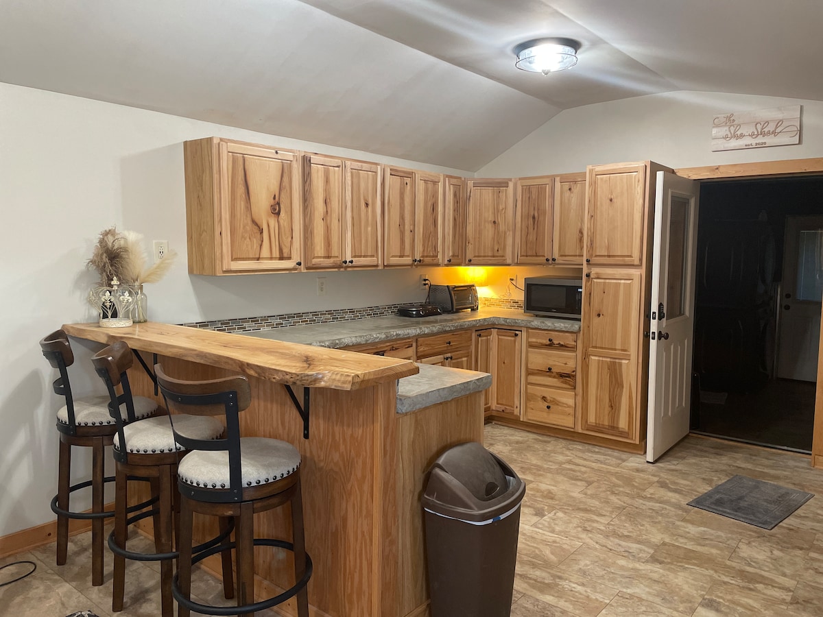 Our cabin is on gated property in the middle of Bluegrass horse country with a an indoor and outdoor private shower and sits on the back of 5 landscaped acres for maximum privacy. Close to the Ky Horse Park! Incl., YouTube TV, WiFi, deluxe king bed, & private deck overlooking pastures. Snacks, tea/coffee and breakfast items provided. Please note there will be a pet fee of $25/Nite/pet with a max weight of 35lbs. Fees will be requested after booking.