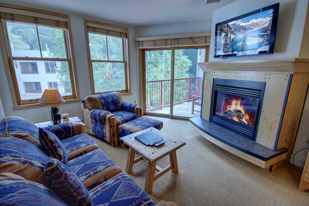 Welcome to our light and bright 1 bedroom condo in the heart of River Run Village(Keystone Mountain)! Skip the shuttles to the lifts as this condo is a 3 minute walk to the gondola! This condo sleeps four and features a private one bedroom with king bed as well as an updated unit with granite countertops. Enjoy your favorite beverage while soaking up the sun and spectacular views of the slopes while either inside heated by the fire, or outside on your own private balcony.