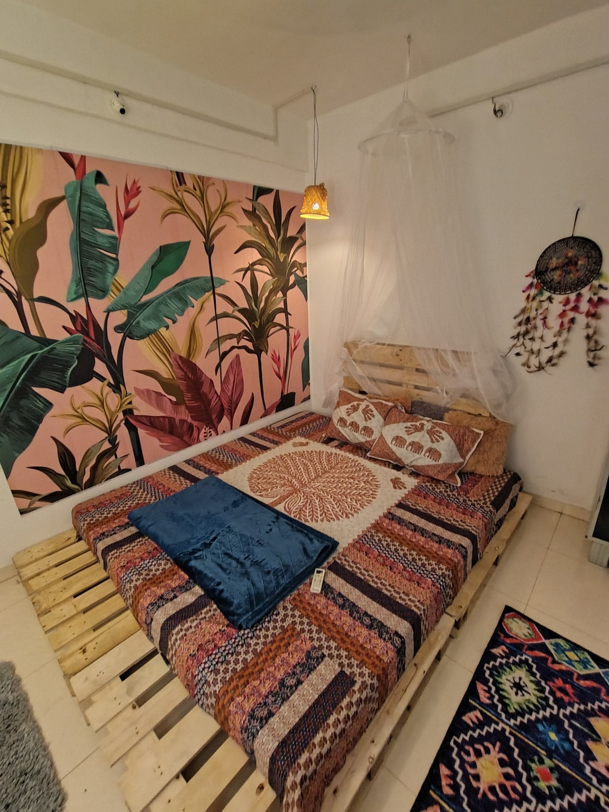 Sit back and relax in this calm, stylish space. Very Close to the airport, ideal for a couple or family who wants to stay for few days with a relaxed atmosphere. 2 bathrooms, an air conditioned bedroom with wardrobe, king size bed, a table to work, a living room with a full size sofa, and equipment like washing machine, gas stove, microwave, fridge, utensils, etc. There is a 55 Inch FHD TV in the living room along with a sofa cum bed to sit back and binge watch your favorite shows and movies.