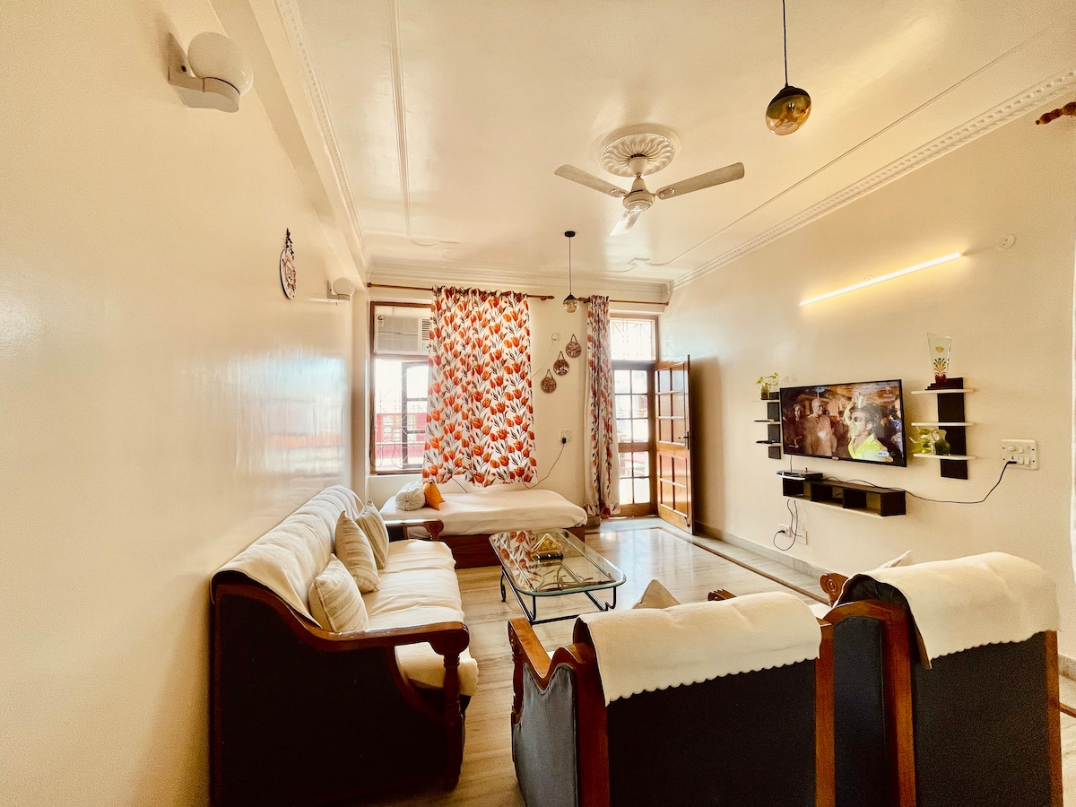 Rishikesh, a serene town in the northern state of Uttarakhand, India, is renowned for its spiritual significance, adventure sports, and picturesque landscapes. Nestled in the foothills of the Himalayas, Villa Bliss Dhyāna is located in a peaceful residential area, providing easy access to the Ganges river, local markets, yoga centers, the iconic Laxman Jhula and Ram Jhula suspension bridges. The apartment boasts a spacious living room, 2 bedrooms, well equipped kitchen, dining & huge yoga hall.