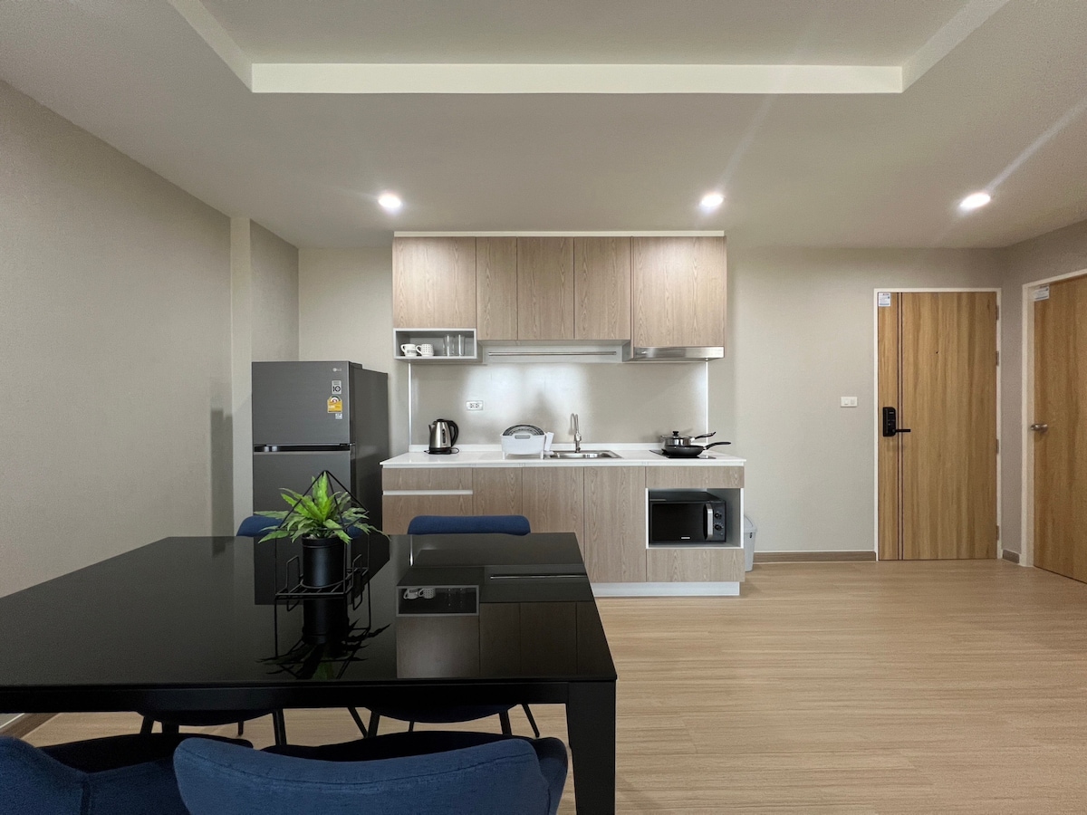 New 32 btu ac. Washer and dryer on balcony King Size Bed 6 foot. 31 sq meter condo 2 minute walk from Bangkok University. Great area, centrally located to everything you need. Food, markets, shopping, and public transportation into the city. We speak English, Thai and Spanish feel free to contact us with questions. Tm.30 paperwork completed for immigration.