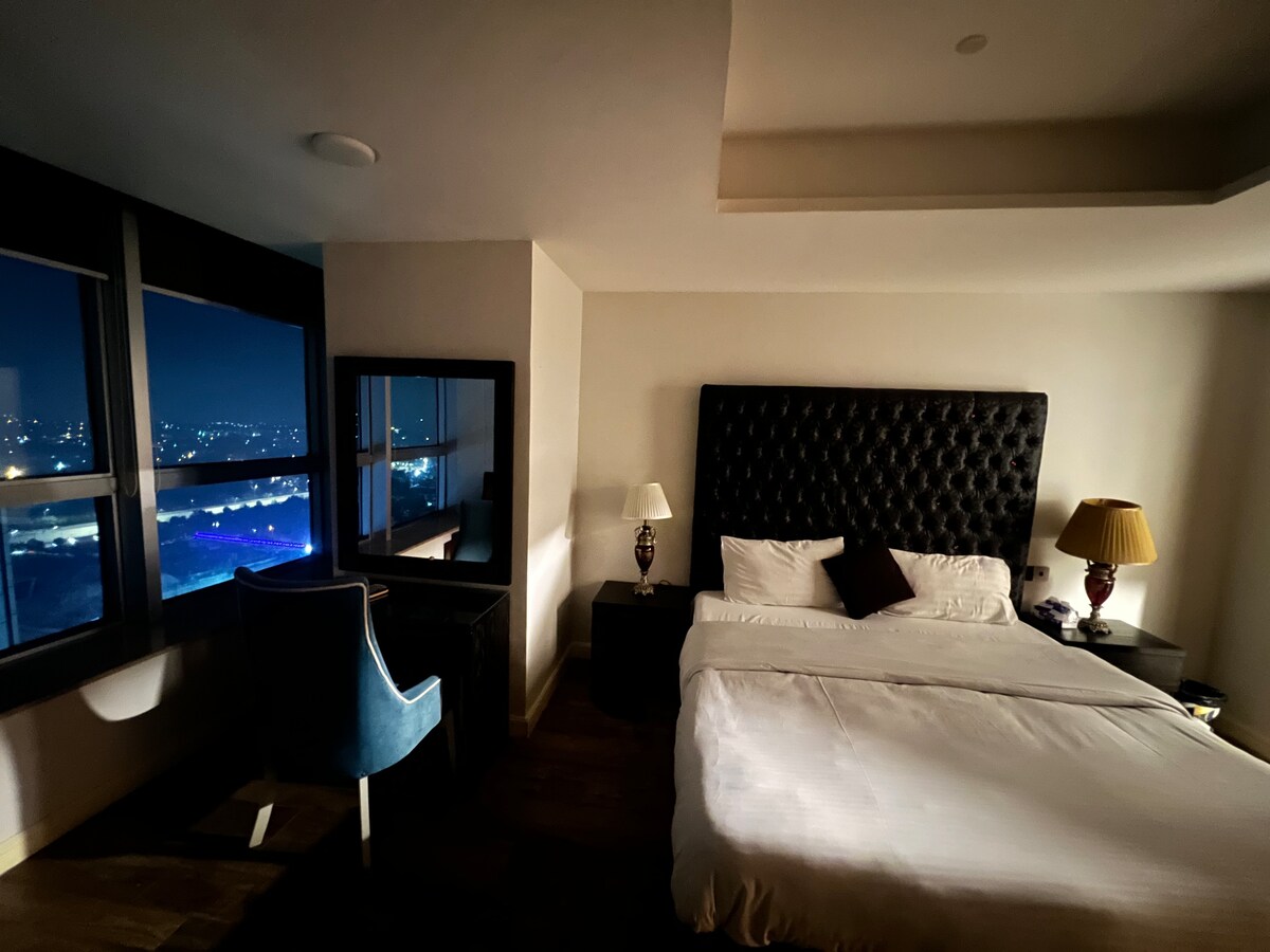 • NOTE: Please Read all information before booking. •Enjoy hi-speed wifi and Kick back relax in this calm, stylish space, enjoy luxurious lifestyle. •Double basement car parking 4 capsule lifts •2 cargo lifts. •24/7 back up generator for Lifts. .For Electricity backup (UPS) is Installed •GYM is also available in the basement, •Departmental store •Mosque