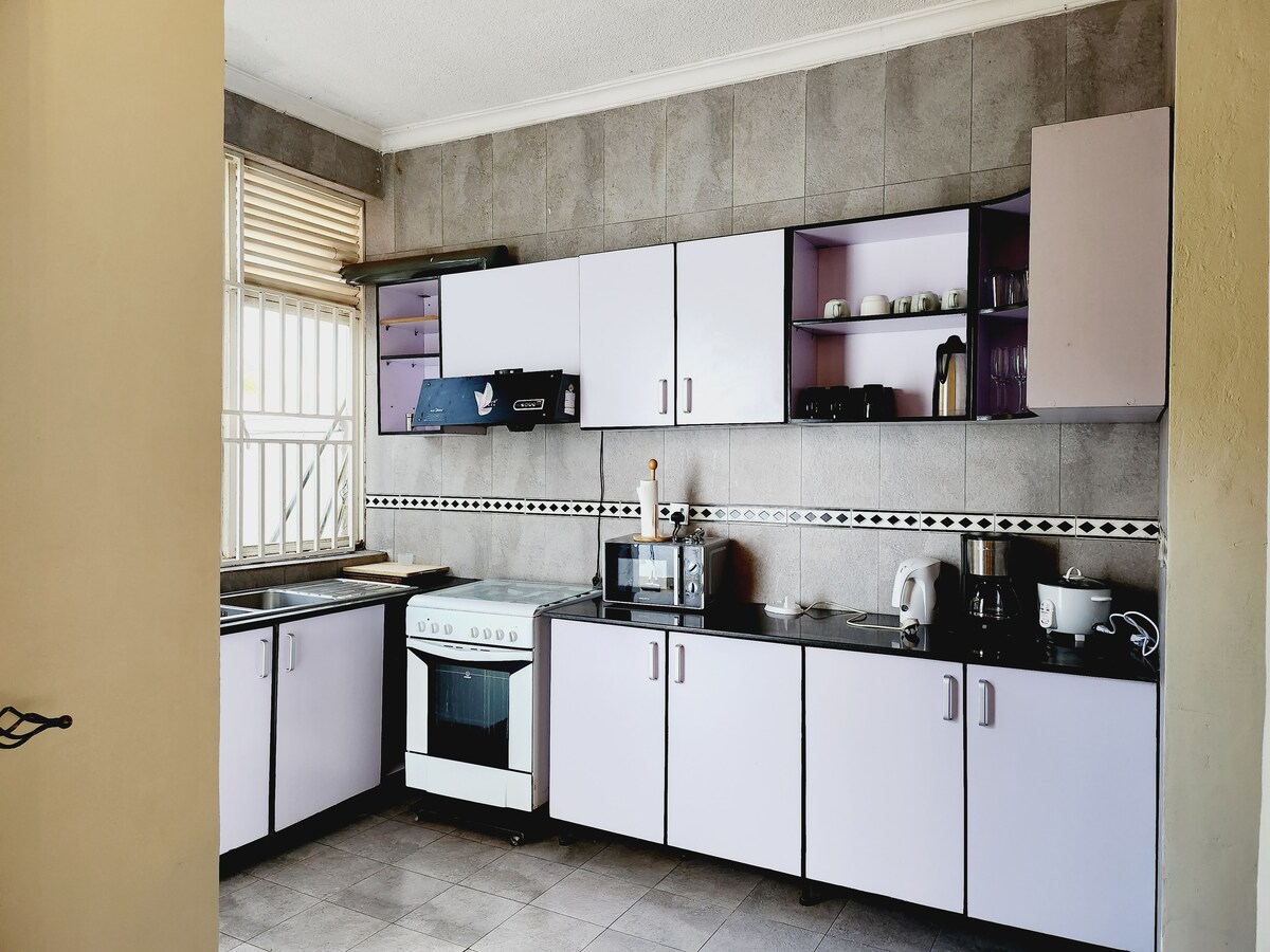 Located in the residential area of Kigali (Gacuriro), 15 minutes from the airport, in a convenient neighborhood, 6 minutes drive to Kigali Convention Center, 5 minutes walking distance to Brioche Café& Sawa City Nyarutarama, Pizza/Chiken Inn, CaliFitness gym, 3 minutes drive to MTN Center, Kigali Golf Resort, 6 Min to Kigali Heights, A 58 inch smart tv, cable tv, Netflix, DSTv, Canal+, fast internet. It is located on a Tarmac road and Calm area.