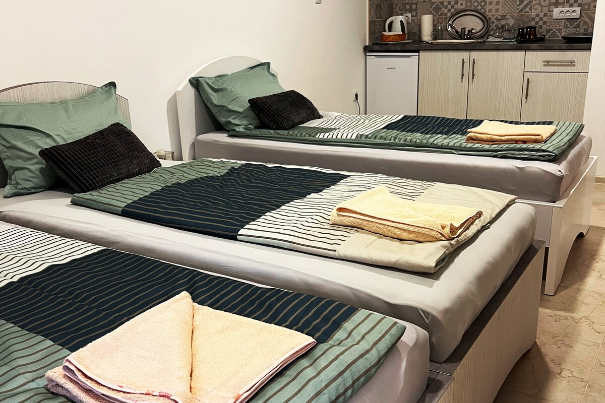 Siesta is a warm and charming apartment in the city center ideal for couples, families or business guests. The apartment has a unique layout, featuring a fully equipped kitchen, a cozy dining room, a comfortable bedroom on the gallery and a functional bathroom. You will enjoy a peaceful stay, and at the same time be in the heart of the city, close to shops, restaurants and the main sights of Kikinda. Free parking is provided, and the apartment is suitable for both short and long stays.