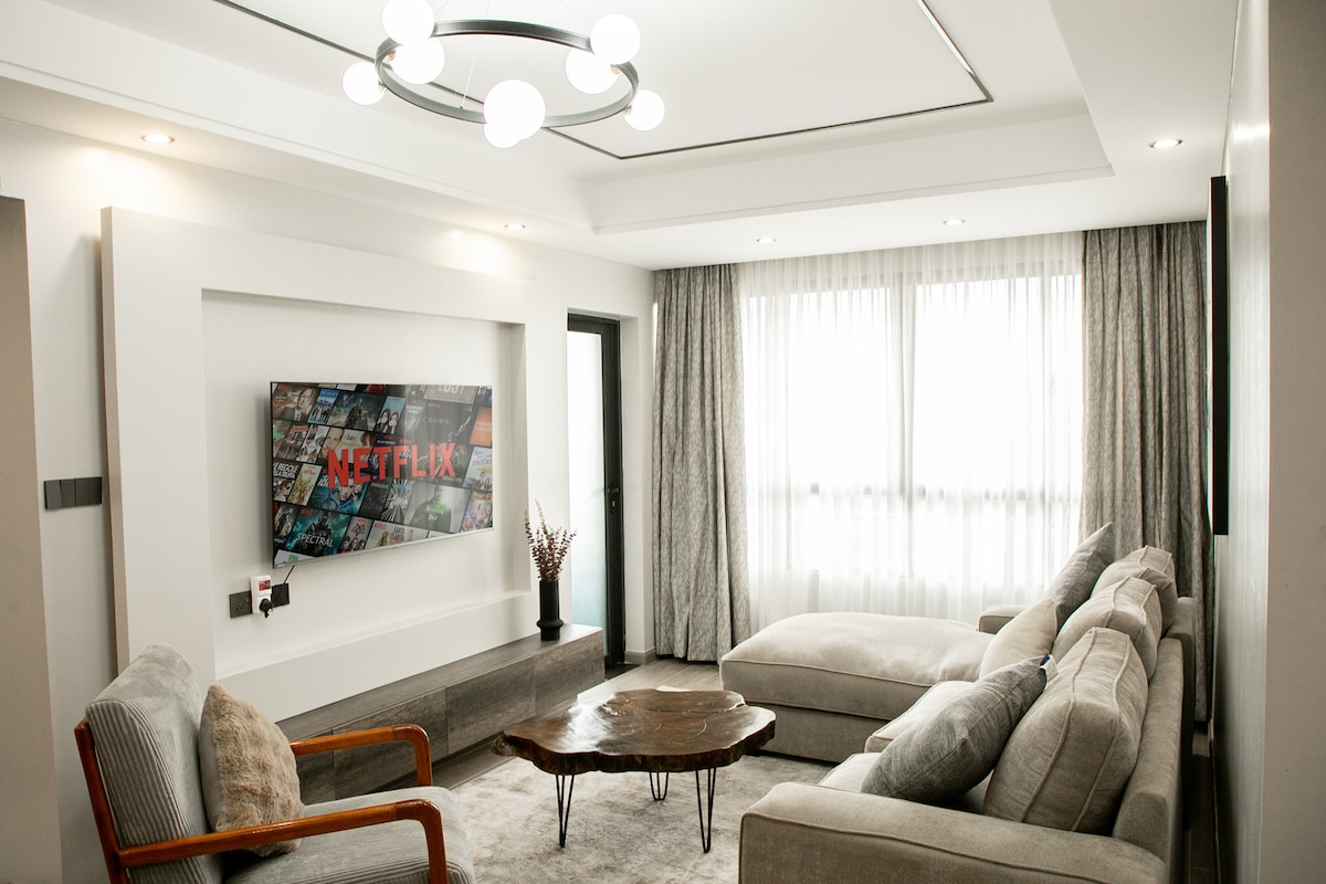 A stylish executive apartment with its own electricity backup. Close proximity to Quickmart, Valley Arcade, Yaya Center and CBD. A gamers haven with a Play Station 5. This tastefully furnished home offers serenity, ambience, peace and quiet to enjoy your stay. Enjoy entertainment on our 75 inch TV, complete with YouTube Premium, Netflix and Free IPTV for all your Live Viewing, Movies and Series. The same is also available in the Master Bedroom TV. The building also boasts a fully equiped gym.