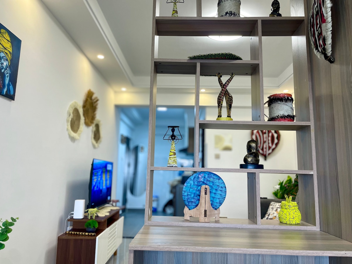 Forget your worries in this spacious and serene space. We are situated in an ideal location, just a 10-minute drive to each shopping mall and five minutes to supermarkets. Our amenities include a café, restaurant mini shop , gym, children's playground, rooftop football pitch, and a sitting area on the rooftop, all available within the apartment complex.