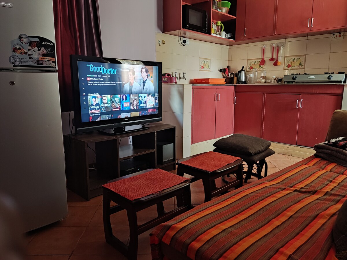 Enjoy our recently renovated, lush private guesthouse in the suburbs of Nairobi. Full bathroom, queen bed, sofa may be used as a single bed, pool table, table tennis table, fast internet and an HD TV with Cable TV and full access to Netflix. 20 to 30 minutes away from the CBD and only 25 minutes away from JKIA Airport via Southern Bypass.