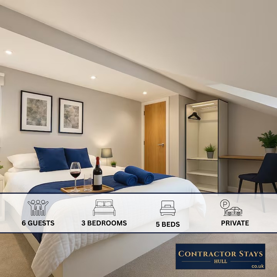 3Bed Apartment | Sleeps 6 | Private Parking | WiFi