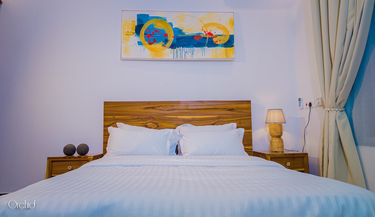 Welcome to Orchid Homes, a stylish and modern 1BR apartment near the beach in Mbezi Beach, Afrikana. Designed for comfort and elegance, it features a queen bed, bright living area, fully equipped kitchen, fast WiFi, Smart TV, and a workspace. Set in a quiet, secure neighborhood with easy access to top spots in Dar es Salaam. Ideal for business travelers and long stays, offering a calm, private, and well-managed experience.