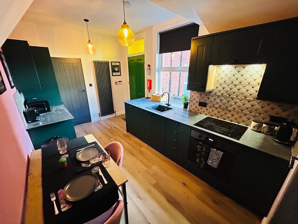 This truly stylish place to stay is perfect for Business, Pleasure & Visiting family. Boasting 3 Large double bedrooms, 2 modern bathrooms and open plan kitchen living area. The property is minutes away from Leeds City Centre. Having just had a full renovation project completed with a fully equipped kitchen with warm, homely, cosy bedrooms, Smart TV in all rooms, dressing tables & Sky TV. On street, free parking with a huge park opposite, tennis courts, play area & lots of idyllic walks.