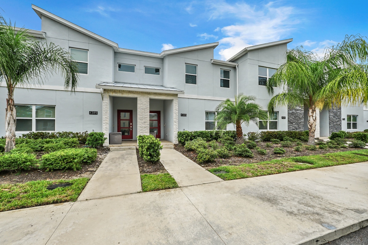 Minutes from Disney, stylish & peaceful Townhouse, with 4 bedrooms and 3 full bathrooms, fully equipped kitchen for up to 8 guests, located in the family friendly Storey Lake Resort. Enjoy our private pool with optional water heater. The open floor plan blends Kitchen, Dining and Living room. Close to outlet malls & retail stores. Great Resort amenities: Heated Pools, Kids Splash Zone, Water Slides, Lazy River, Gym, Mini Golf, Lake, Kayak, Tiki Bar, Ice Cream Shop & more.
