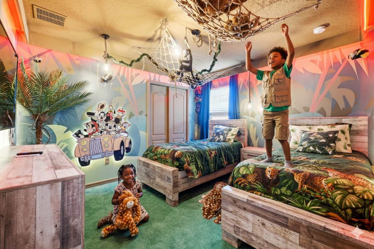 Escape to your dream oasis at Storey Lake Resort! - Perfect base for your Florida adventure, just a short drive from Universal Studios and Magic Kingdom - 9BR retreat offers themed bedrooms featuring Mickey Mouse, Toy Story, Frozen & Harry Potter designs, plus a Marvel-themed game room. - Enjoy high-speed Wifi, smart TVs throughout & free parking. - Relax by the pvt pool, hot tub, dine alfresco on the outdoor patio or enjoy the access to shared gym. Easy access to top attractions awaits!