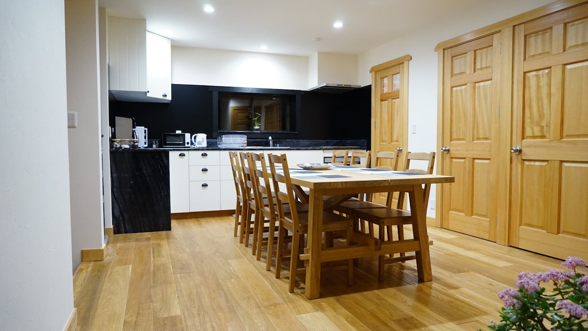 Welcome to The Hakuba Koyama, a newly constructed vacation home situated at the base of Mt. Hakuba, often referred to as the Japanese Alps. The house is for up to 10 guests and just a 3-minute walk from the seasonal shuttle bus stop to nearby ski resorts. While it's a paradise for skiers in winter, Hakuba also attracts visitors year-round with its natural beauty. Whether you're escaping the summer heat or admiring the fall foliage, The Hakuba Koyama is the perfect place to relax and unwind.