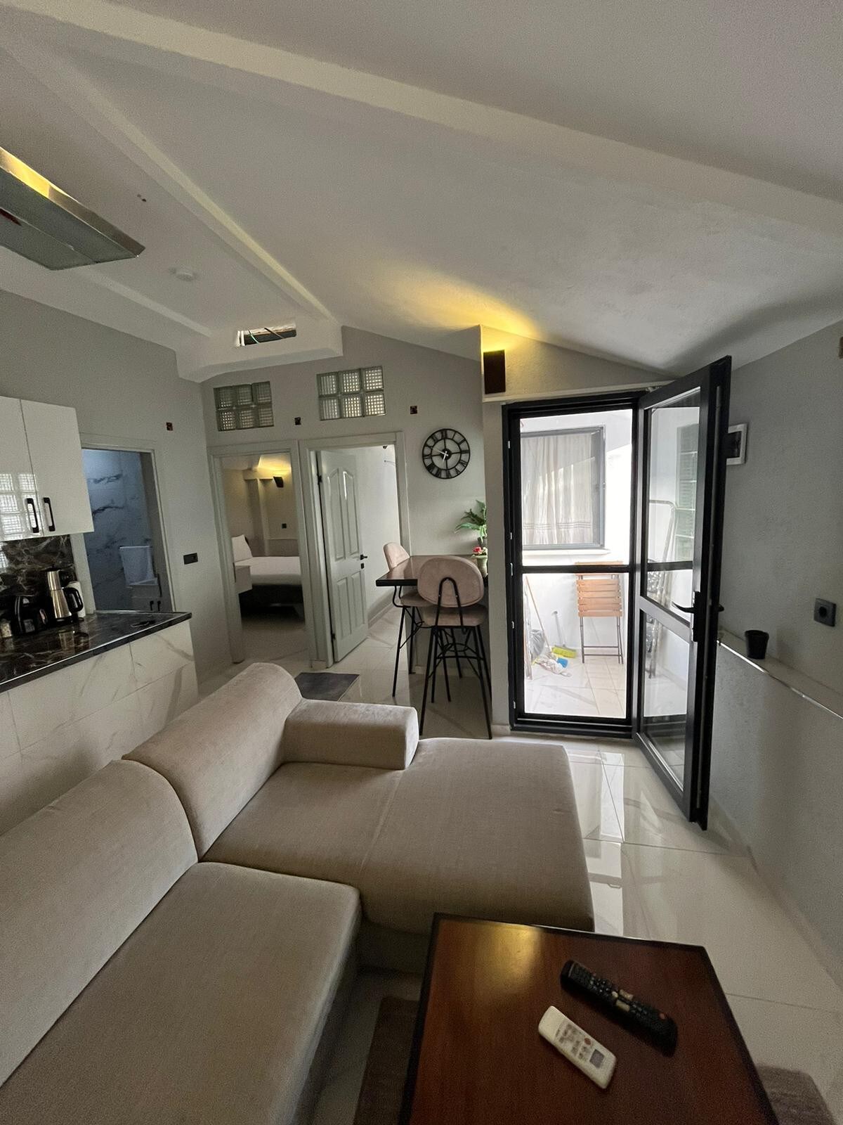 Bodrum Merkezde ,marinaya, sahile, restoran, kafe, bar ve marketlere birkaç dakikalık yürüme mesafesinde bulunan yeni inşa edilmiş bu şık ve konforlu dairemizde konaklamanın keyfini çıkarın.