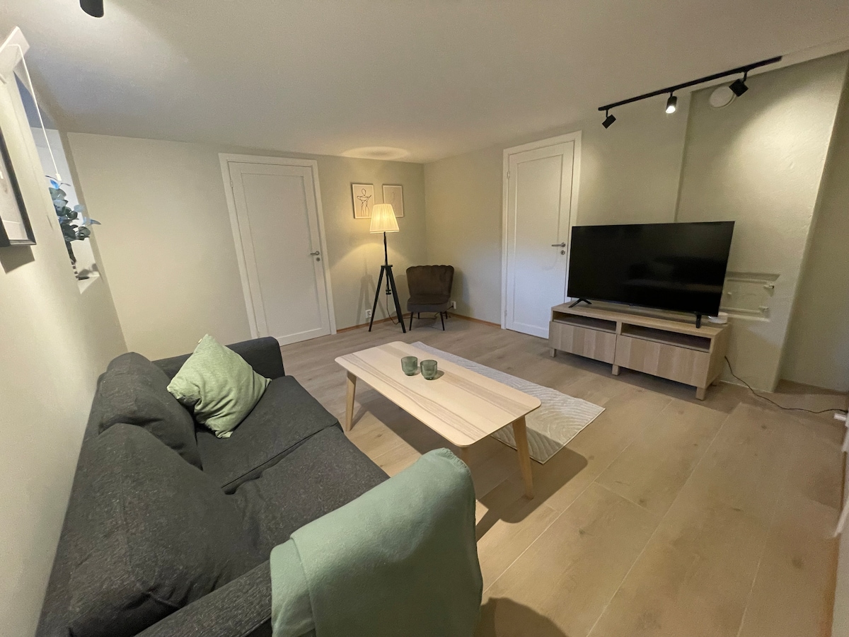 🛏️ 2 bedrooms 🛎️ Keyless check-in 24/7 🚗 Free parking 🍳 Simple kitchenette (sink only in bathroom) 🔋 Free electric car charging (Type 2) 📺 TV with Chromecast in both bedrooms and seating area 🚿 Pleasant bathroom 🧺 Combined washer/dryer ♨️ Heated floors 🚌 Bus stop right outside