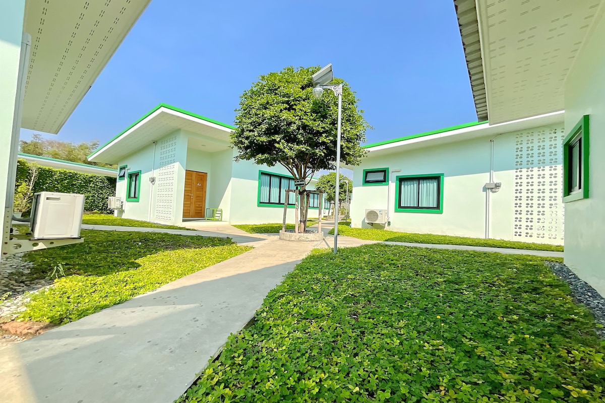 บ้านหลังเล็กที่แวดล้อม ไปด้วยต้นไม้บรรยากาศเป็นส่วนตัว อยู่ไม่ไกลจากร้านอาหารตามสั่ง ใกล้ร้านสะดวกซื้อเพียง 1 กิโลเมตรอยู่ถนนหลักไม่ต้องเข้าซอย ที่จอดรถมีหลังคา เดินทางไปหาดสวนสนได้ในเวลา 5 นาที