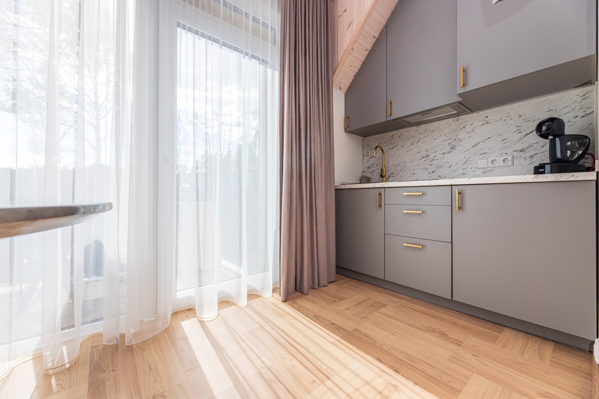 The apartments built in 2021 are located in the "Čiki Puki Pajūrys" houses block, Kunigiškės settlement, on the outskirts of Palanga. It is an ideal place for those who love the sea and want to escape from the hustle and bustle of the city—a wonderful pine forest for nature lovers. Tennis courts and "Labrytys" jogging track with fitness facilities nearby - for sports enthusiasts. For lovers of active recreation - 350 meters away-bike path that connects Nemirseta - Palanga - Šventoji.