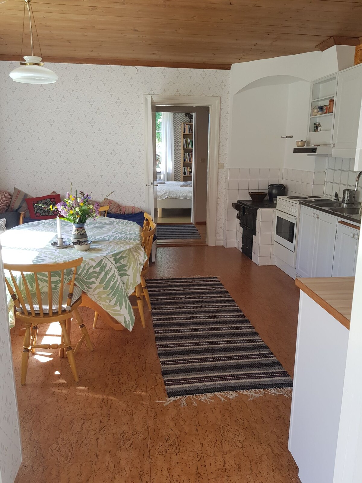 Sjöstugan- vår pärla precis vid sjökanten! Eget hus med sovloft, kök, vackert stort rum med braskamin och utsikt över sjön. Vedeldad bastu med dopp i sjön precis intill. Spabad på bryggan- alltid varmt. Badbrygga 5 meter utanför dörren. Tillgång till båt. Om ni vill köpa fiskekort, kontakta värd. Ved till baskamin och bastu ingår. Gården är inhägnad hela vägen till sjön och vår Beagel hund Vide är ofta lös ute. Han är snäll. Lakan, handdukar och städning ingår.