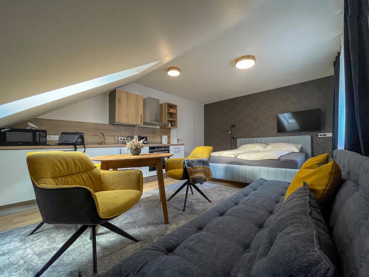 Beautifully decorated modern apartment in the heart of Kvilda - Šumava National Park just few steps from Ski Slope ( 100 meters ) and all major bike trails. Enjoy magnificent views of a nearby nature and national park. Apartment features free highspeed WIFI , fully equipped kitchen with dishwasher, stovetop, microwave and fridge , fully equipped bathroom. Sleeps up to 3 people + baby and offers separate bedroom above the living room ( reachable on stairs ) and foldable sofa in the living room.