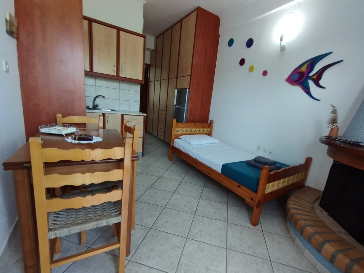 It is the second autonomous apartment in the same space, behind "kalafatis beach home 1". Another 30sqm apartment. with 1 double bed, 1 sofa bed, a kitchen and a WC. Surroundings with pine trees and grass, right next to the sea. Είναι το δεύτερο κατά σειρά διαμέρισμα στον ίδιο χώρο πίσω από το kalafatis beach home 1. Ένα αυτόνομο διαμέρισμα 30τμ. με 1διπλο κρεβάτι,1καναπε-κρεβατι, μια μικρή κουζίνα και WC. Το διαμέρισμα περικλείεται από θάλασσα και κήπο.