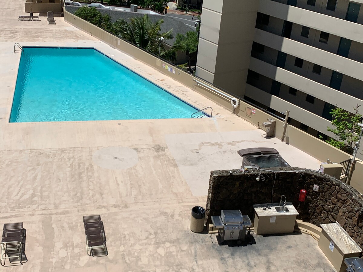 A clean small studio apartment where urban meets hotel. This comfortable space is ideally located in a condo/hotel building in a corner of Waikiki near Convention Center, dining & shopping, attractions and beach. Amenities include a kitchenette with hot plate, microwave, fridge; WiFi 100mbps; air conditioning; also pool, hot tub, barbecue grills, gym. Location allows you to live like a local and enjoy rest and relaxation away from the major hustle and bustle of Waikiki. TA-068-403-3024-02