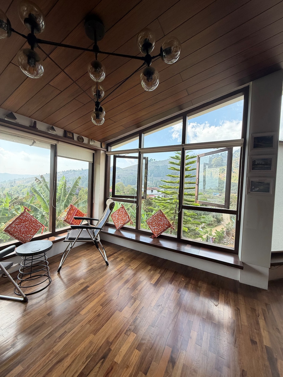 Unwind at this Cozy & Exclusive 2 Bedroom Villa, overlooking the Mountains & Valley, with mist rolling below. With a Large Deck, enjoy the Breathtaking view in total privacy. Feel the pristine mountain air caress & rejuvenate your senses as you chill out on the Balcony & Lawns leading from each bedroom. With exquisite Gardens spread on 1.3 acre of greenery, experience the serene, tranquil & safe haven away from the hustle n bustle. Certified by India Tourism & also by State Tourism Dept.