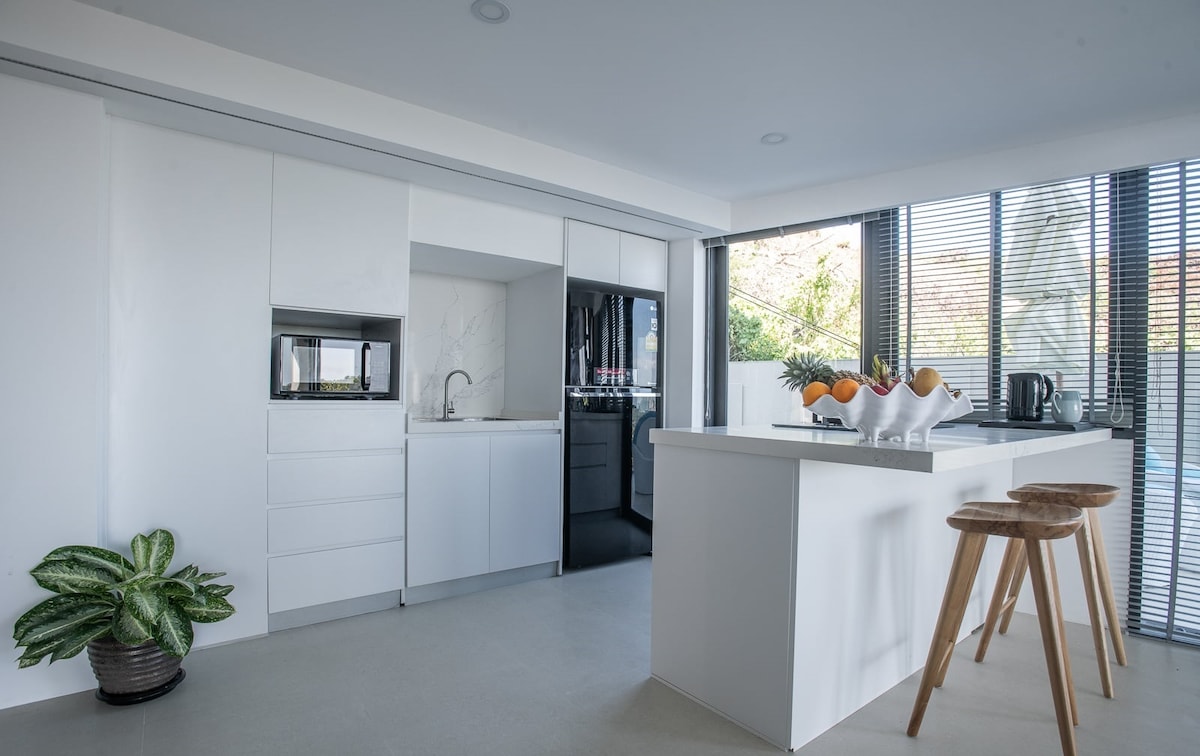 The villa is inside a wood-covered compound about ten meters from the beach, the house has a private pool , the two balconies in the bedrooms have a direct view of the sea, the rooms are very spacious and include a shower and bathroom on the upper floor and a spacious kitchen and dining area, everything is modern and new.Lots of space, suitable for a family or even two pairs of friends