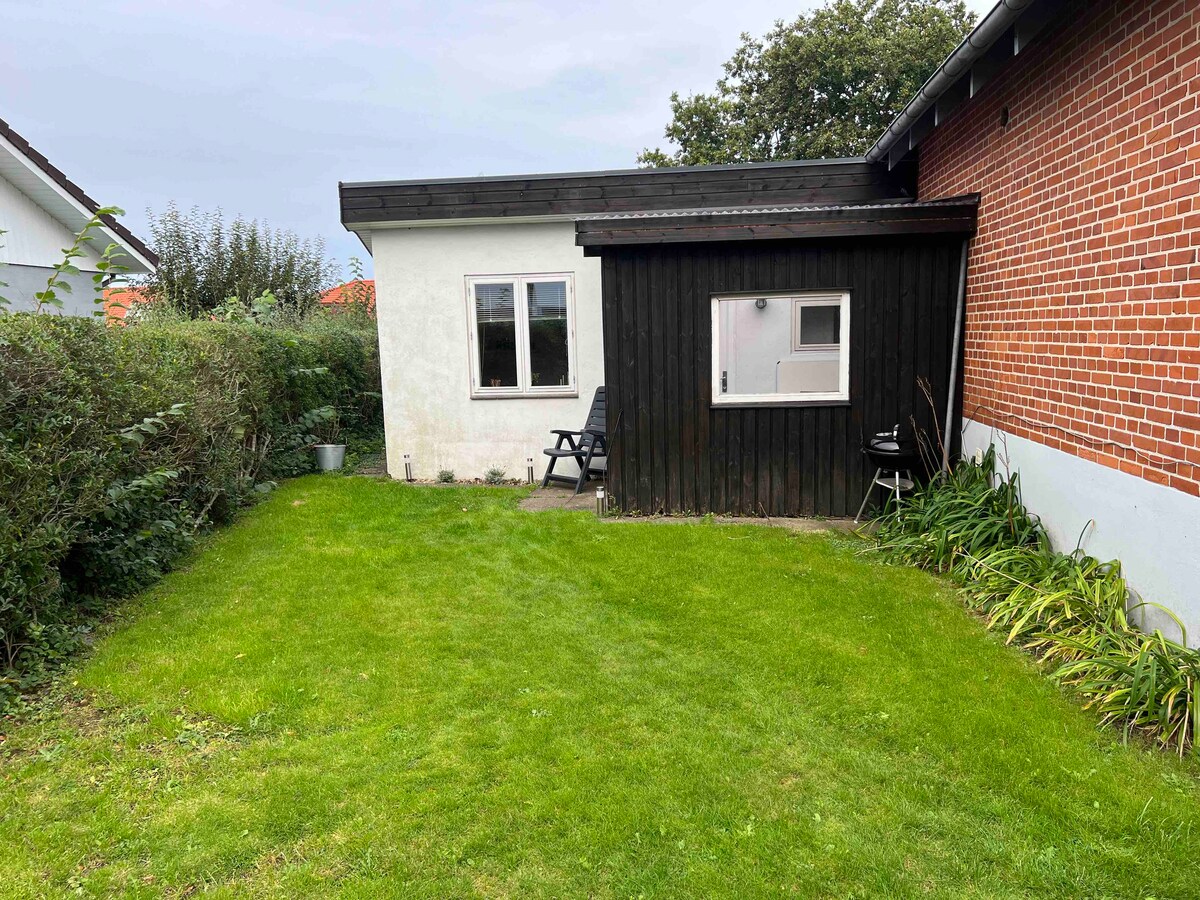 2 bedroom apartment newly renovated this summer with, among other things, new kitchen and bath. There is easy access via code lock, so you can arrive at your convenience. Located in the outhouse next to our own home. 5 km from E20/E45 and Kolding Mall. Less than half an hour to Legoland , Legohouse and Givskud Zoo. It is about 700 meters to shopping as well as bakery. Cozy and peaceful garden where no amenities should be shared with others. Good hiking trails in the area including the Donss lakes. In addition, bike path to Kolding.