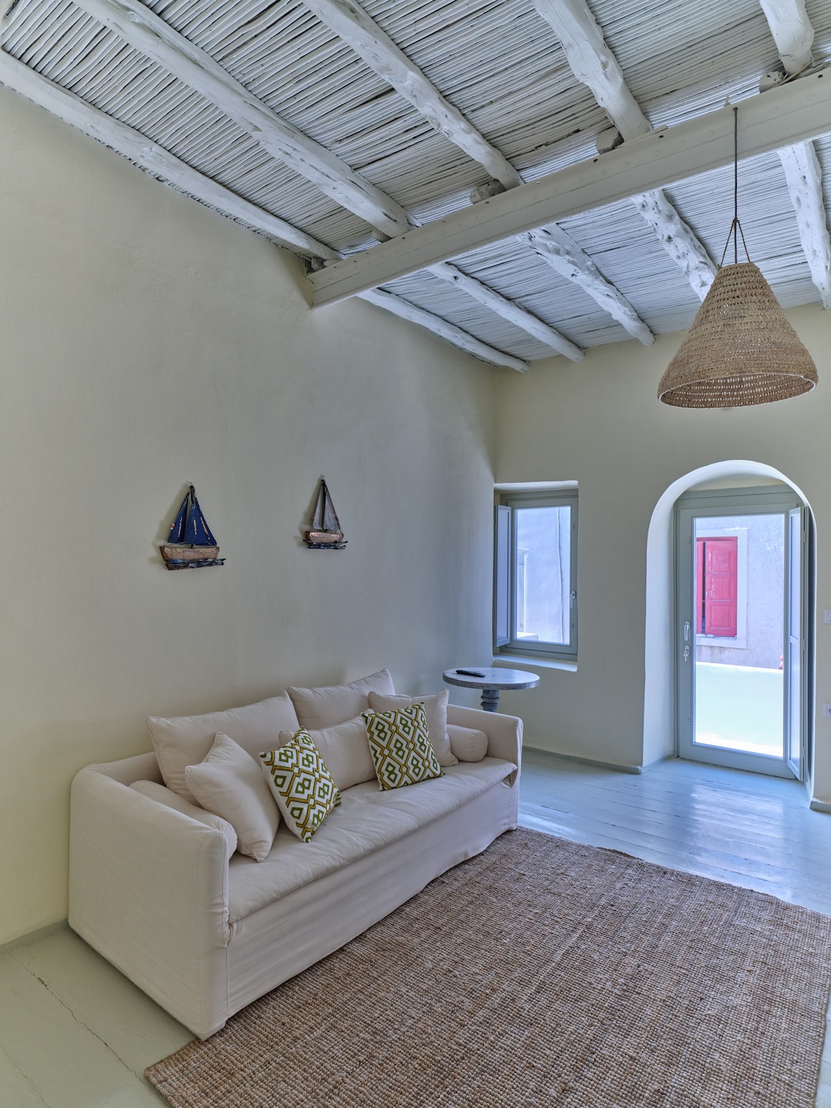 Giacomo Home is an inviting property in a breath-taking location. Built in traditional Cycladic-style it boasts impressive stone clad walls and acres of space. The simplicity of the architectural design and the clean surfaces are a central point of the architectural composition and functionality of the spaces. The houses’ two en-suite bedrooms (Cocomat sleeping eperience) provide you with cool, calm havens which will help soothe you to sleep.