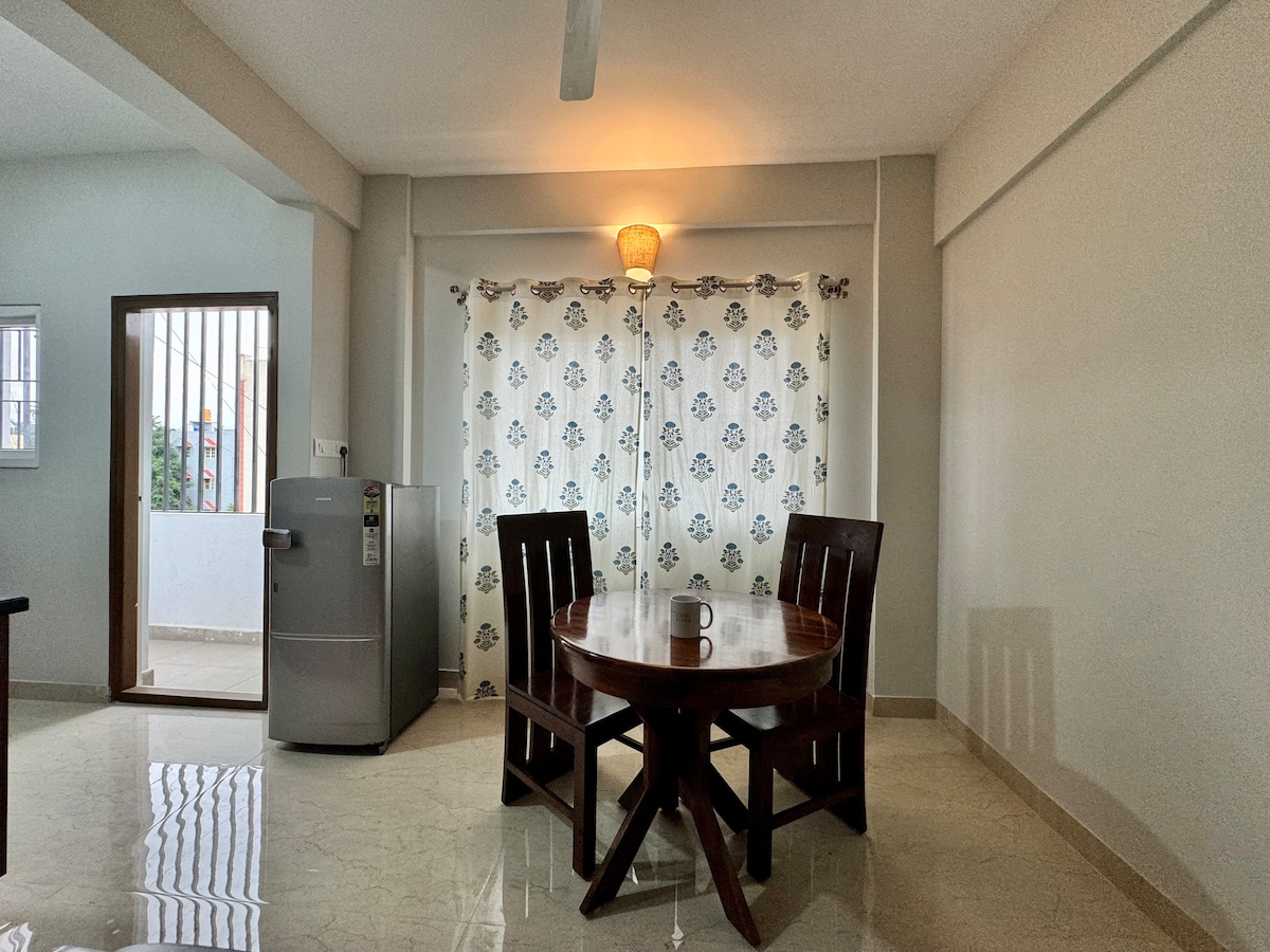 Private 1BHK with Balcony in Koramangala Experience premium living in a private 1BHK with balcony in upscale Koramangala. Ideal for couples, professionals, and business travelers, our modern units offer high-speed Wi-Fi, housekeeping, a fully equipped private kitchen, access to a common terrace garden, washing machines, and dryers. Located near top cafes, restaurants, and offices, this peaceful stay combines comfort and convenience in one of Bangalore’s most vibrant neighborhoods.