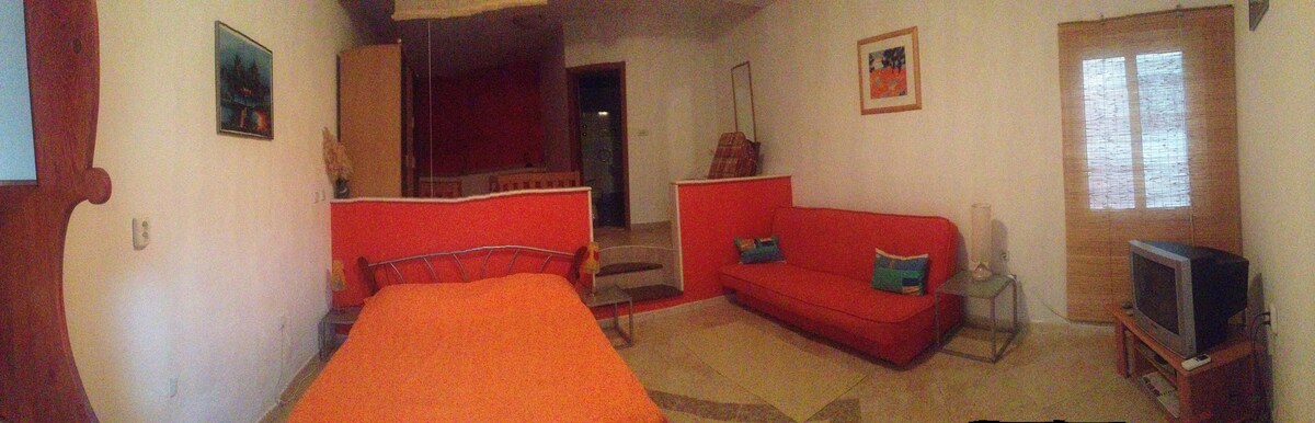Cozy studio apartment that accommodates 2. It is situated near the center of Lumbarda, close to the shops, bus stop, beaches, restaurants, cafes... With beautiful sea view. Located close to our family winery where you can try our domestic wines.