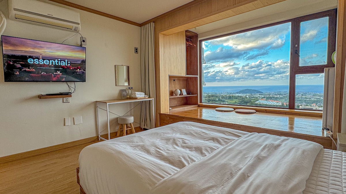 Check-in 4: 00 pm - Check-out 1: 00 pm โฅ๏ธ Bedroom - Allergy care hotel bedding washed daily - 65 "Android TV, cable channels - Disney, T-Bing available - 5.0ch JBL Soundbar cinema-like sound - Cafe atmosphere with stand lights, mood lights, etc. โฅ๏ธ Kitchen - Spacious dining table - Cooking allowed - Wine glasses, soju glasses, openers - Coffee cups, tableware, cooking utensils - Illy coffee machine (2 coffee capsules provided) - Salt, pepper โฅ๏ธ Terrace - Lightning speakers with calm sound - Entire ocean view terrace with direct view of the sea โฅ๏ธ Bathroom - shampoo, conditioner, body wash, etc. โฅ๏ธ Underground parking lot (free of charge) โฅ๏ธ Early check-in, late check-out (inquiry in advance)