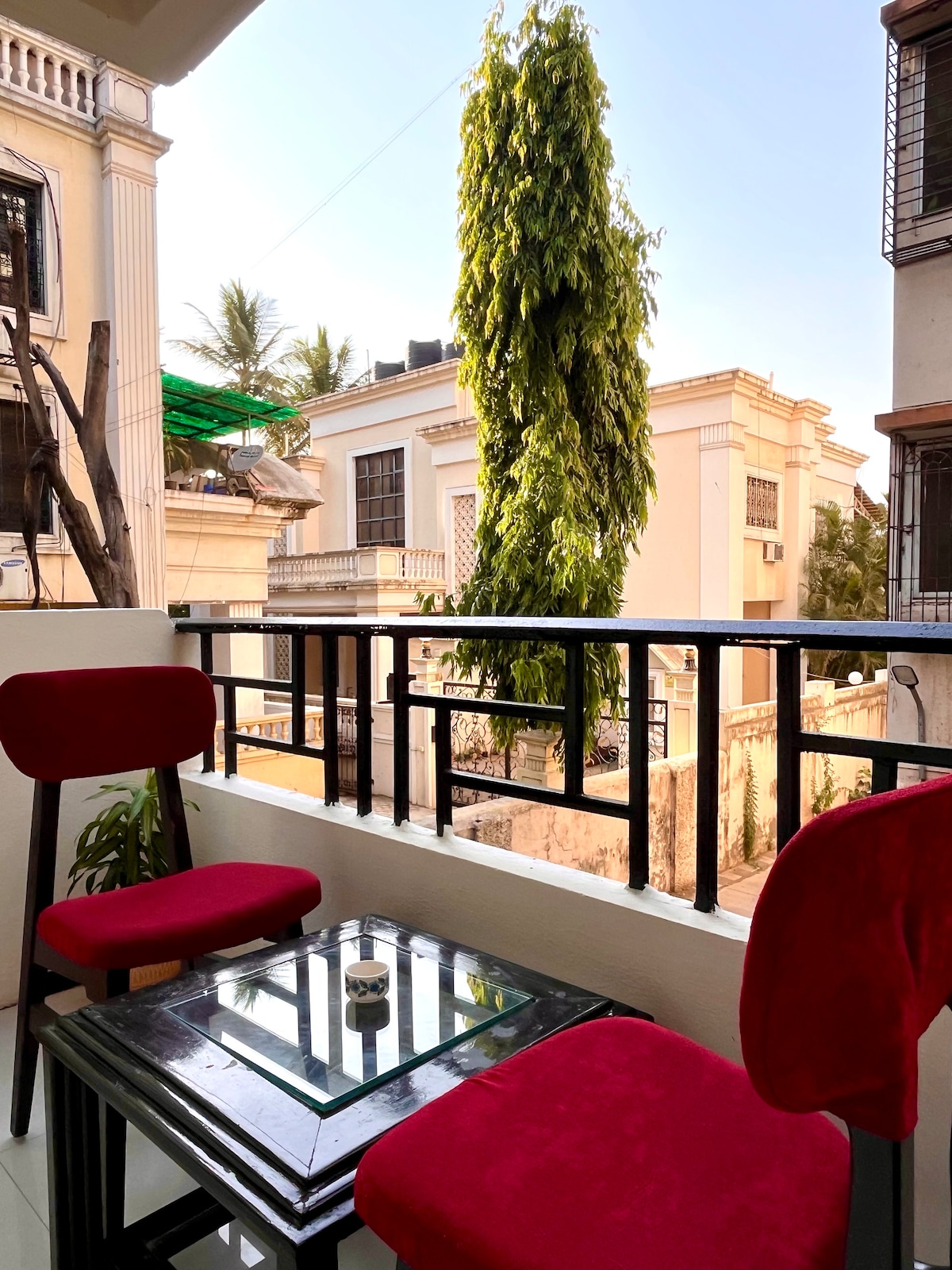 Welcome to Tranquil Retreat, a new flat in Koregaon Park and your cosy getaway in the leafy heart of KP! Enjoy calming views of betel nut trees, a classic Mangalore-tiled rooftop, and soothing greenery. Perfect for solo travellers or couples, the space offers comfort, privacy, and a touch of luxury. Relax in the snug living area, unwind on the private balcony, and enjoy easy access to nearby cafés, restaurants, and transport. Peaceful, welcoming, and designed to make you feel truly at home.
