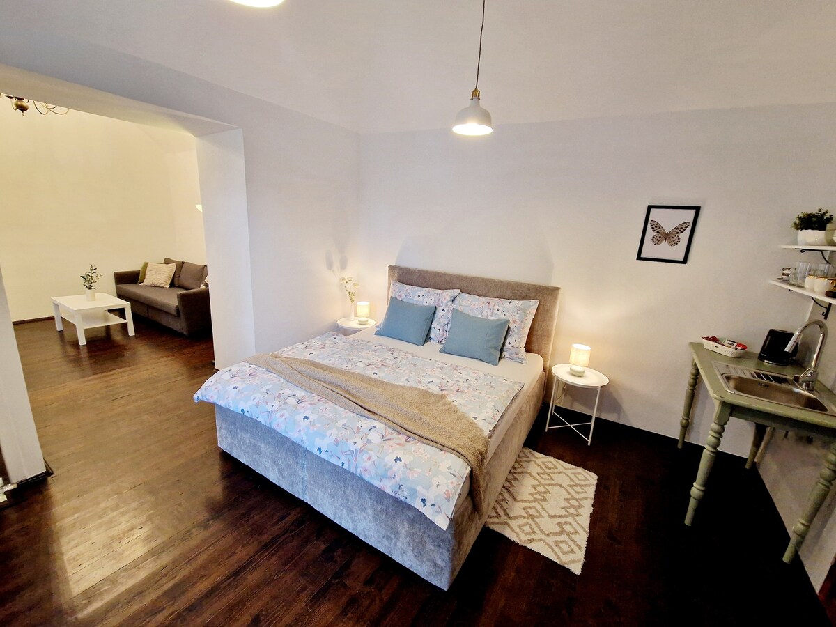 Útulný, tichý apartmán so všetkých, čo potrebujete. Centrálna poloha, priamo pri katedrále. Len pár krokov od niekoľkých reštaurácií, v priamej blízkosti tichej kaviarne, obchodov a nákupných centier. Vzhľadom na úplne centrum mesta, kde sú ceny za parkovanie naozaj dosť vysoké 24E/deň, sme sa snažili pre našich hosti zabezpečiť parkovanie v podzemnej garáži budovy Cassovar vzdialenej od ubytovania 750m (auta do 2,1m) ktoré dávame k bytu bezplatne. Wifi and TV with prepaid cable programs.