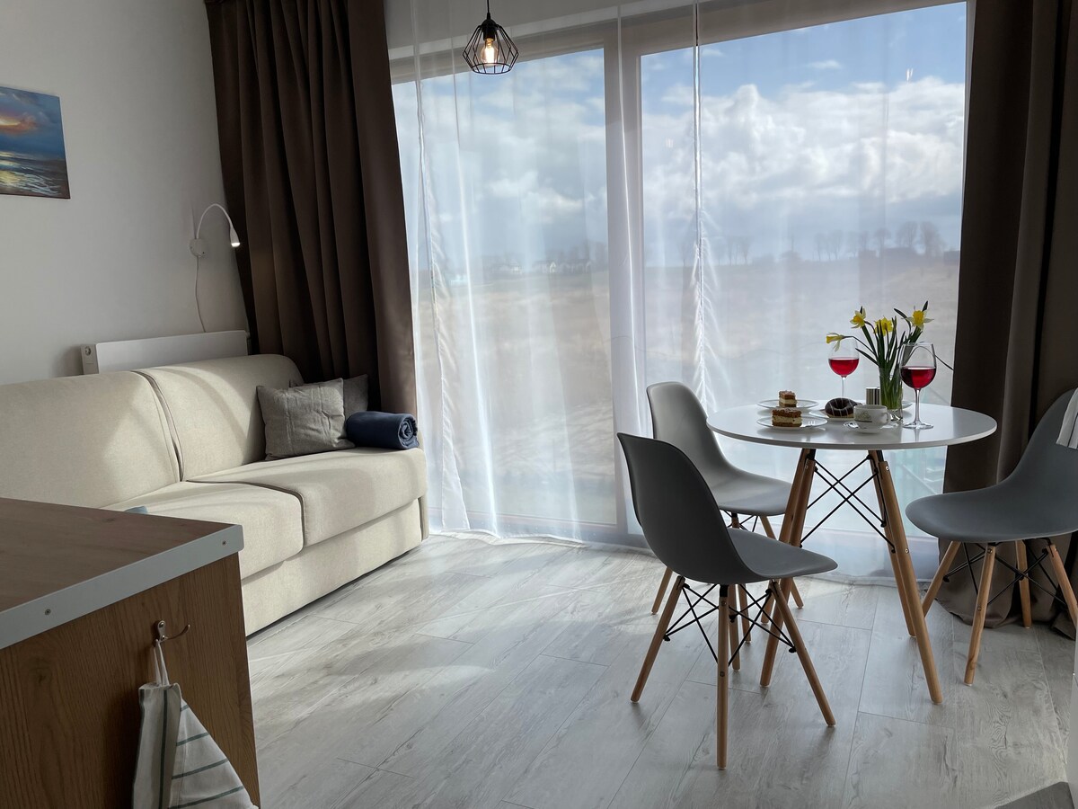 Our unique Jantaris apartment is located in the town of Mielno in the Western Pomeranian Voivodeship. The property was built in 2022, only 20m from the beach, and just a 5-minute walk to the center of Mielno. This apartment is air-conditioned and fully equipped, on the ground floor ,consists of living room, kitchenette and bathroom. It also has a patio where morning coffee with sea noise in the background will be great for everyone:) Private underground parking on premises. You're invited