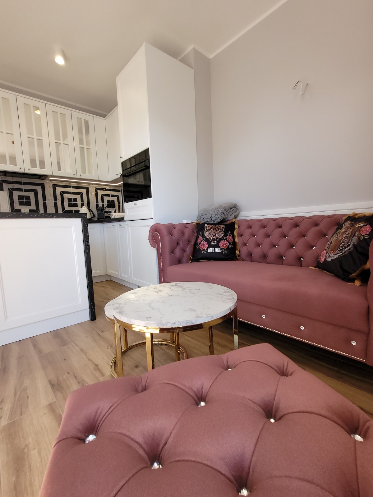 We offer a luxury Studio apartment, located on the ground floor with a fully equipped kitchenette and a spacious bathroom in black and white colors. Listing includes: - Stay in a luxury apartment, - possibility of free use of the Wellness area: pool, sauna, hot tub, fitness room - 90 minutes per day (depending on the selected apartment) - Secure and free parking - WiFi in the apartment - possibility to use the outdoor playground for children