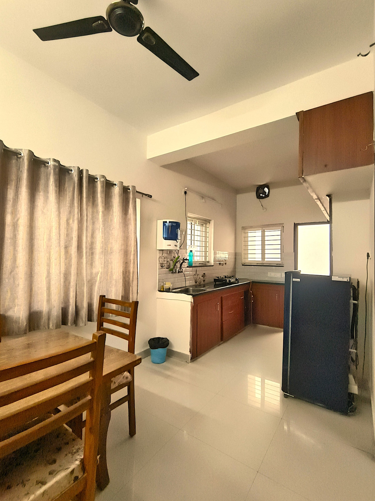 Amenities: AC Living room with 45-inch smart TV Dining area with AC 3 AC bedrooms with attached washrooms House keeping - Once everyday Washing machine Equipped kitchen Microwave, Kettle, Rice cooker, Water purifier Refrigerator 3 geysers Car parking - 2 **Parties strictly not allowed** Only families or corporate guests are allowed