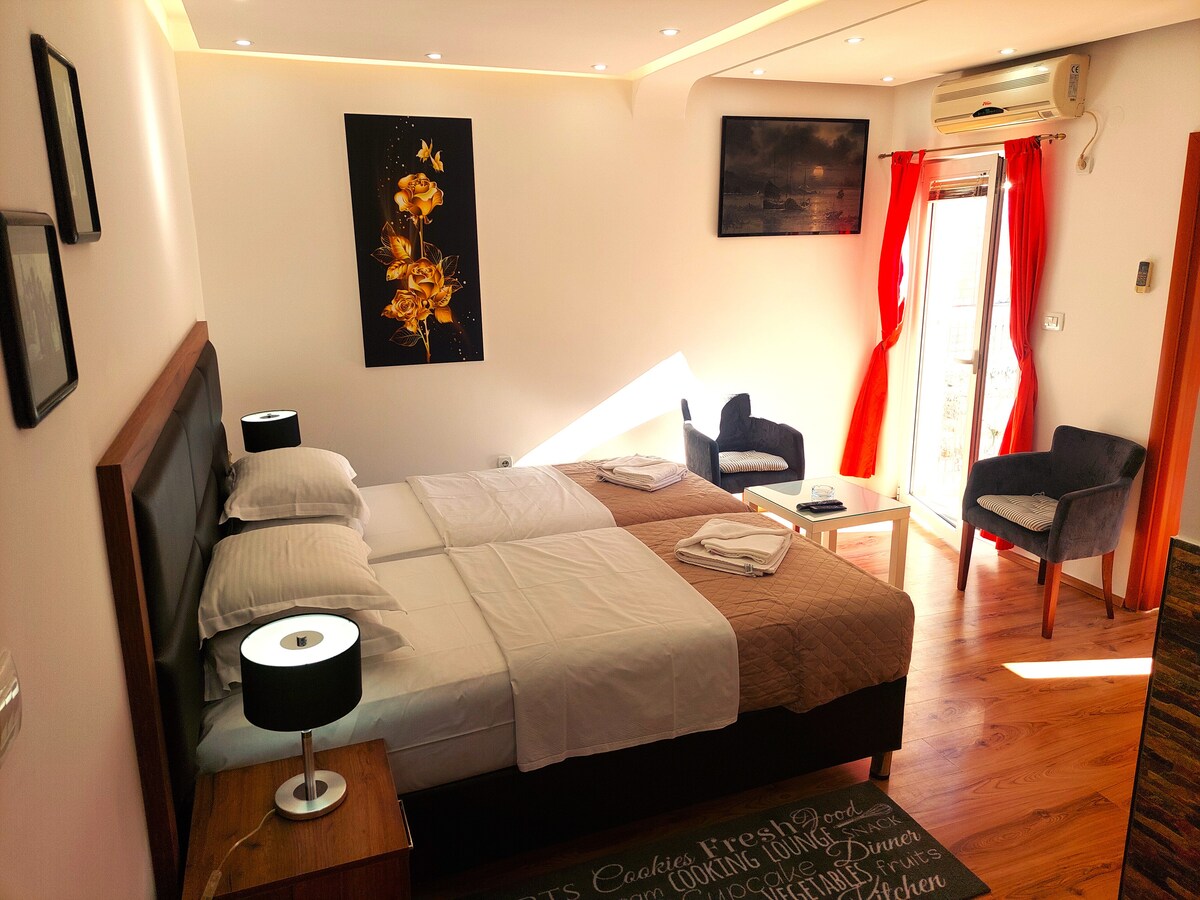 Enjoy an exquisite experience in peaceful part of town which our apartments provides in the heart of Kotor. The apartment consists of the room connected with kitchen. The bathroom is equipped with everything you need, including washing and drying machine. Location is central and perfect for both sightseeing and the day spent on the beach(the beach is just around the corner). The supermarket is 50m away. All of our 5 apartments are easily connected with each other in case you need more space.