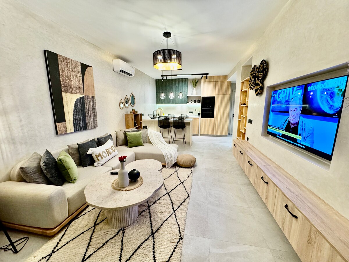 ✨ Luxury Apartment with Pools & Gym – Digital Nomads Special | Marrakech Quiet and residential area. Welcome to this luxury apartment, ideally located in a new private residence (delivered in 2025), secured 24 hours a day, designed to offer comfort, tranquillity and high-end services. Whether you're a digital nomad, business traveller, family or extended stay, this home has been designed to make you feel at home.