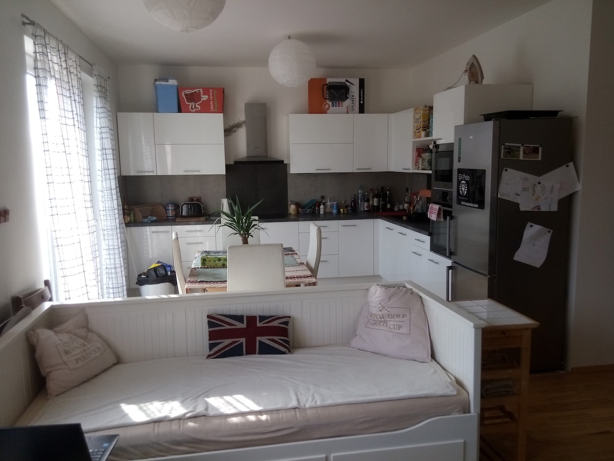 The nice simple appartment with separated entrance from a street - contents from main room, bathroom and hall. There is no kitchen, only kettle and mini fridge and some dishes for breakfast and snack. Appartment is opposite to the beautiful largest forest in the Prague. In front of the house is small zen-like garden and small zen-like garden is also on the opposite side.