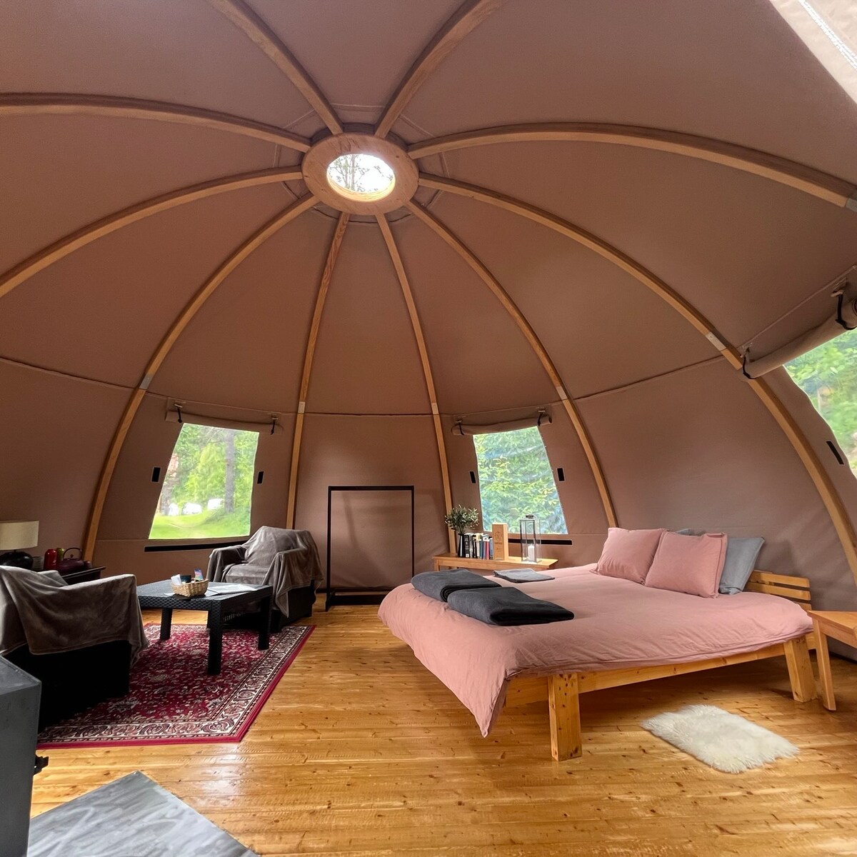Romantic Glamping Night in a Dome Tent, Lake View