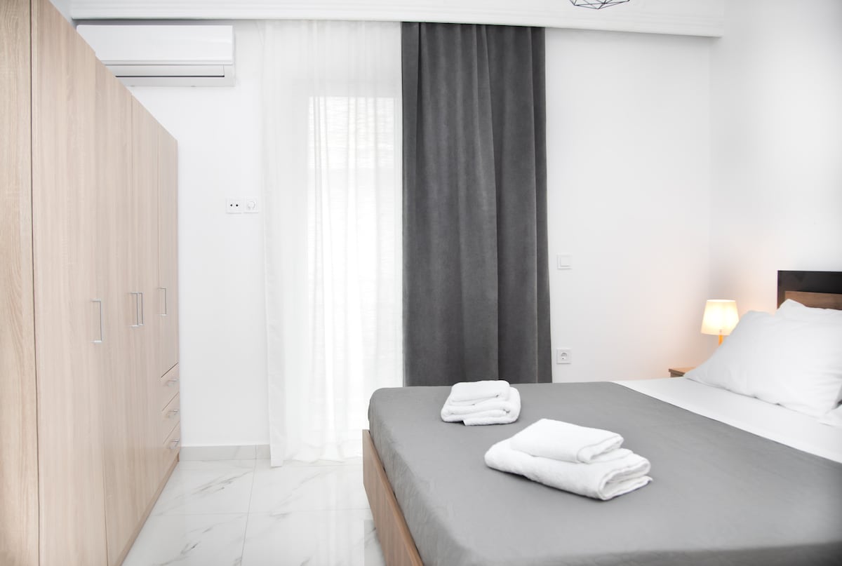 Fully renovated and modern apartment located next to the beach that you can visit with only 2 minutes walking. You can enjoy your stay and have fun with friends or family, right next to beautiful and fully organized beach. Lot's of restaurant's and beach bar's in the neighbοrhood will offer you a pleasant vacations. Not far from the center of the town that you can visit on foot or bicycle.
