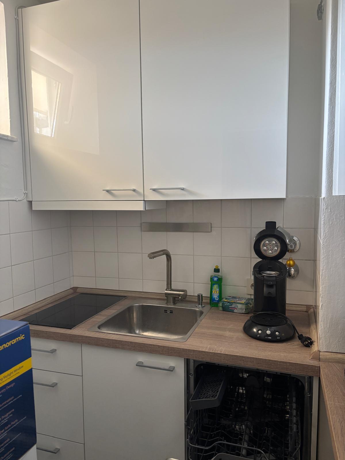 Tastefully furnished, very bright, spacious living/dining area, TV, DVD player, Wi-Fi, stereo system, separate kitchen fully equipped incl. dishwasher, modern bathroom with floor-level shower, sleeping area separated by sliding door, double bed, washing machine in the basement, southwest terrace, parking space in front of the house, S-Bahn [suburban train] within walking distance (8 min.), organic supermarket and all major shops within 2 - 5 minutes' walk.