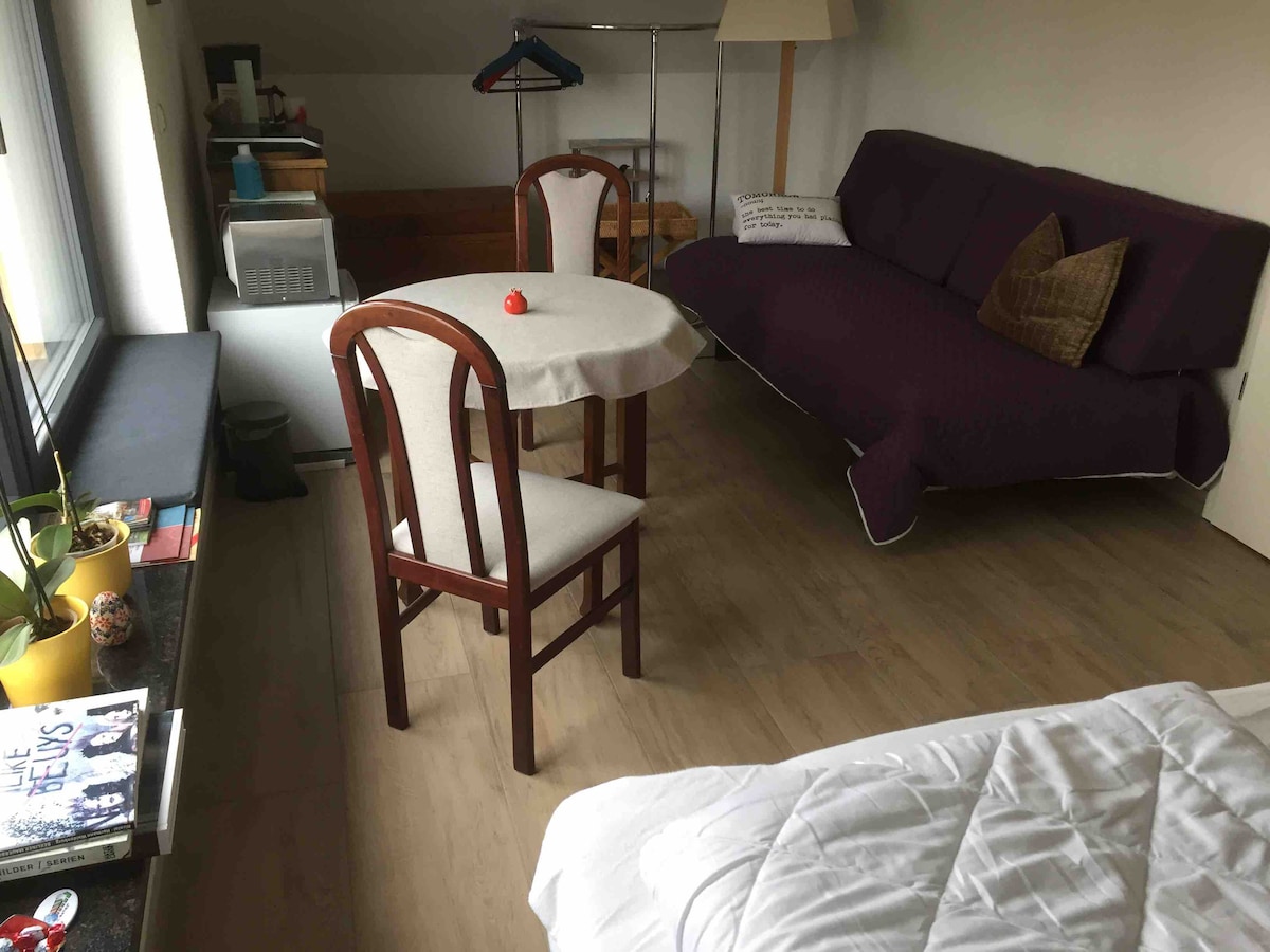 Stay in this cozy loft and live like a local in Rostock. We are just a few minutes walk from restaurants and parks. A two-minute connection to the city highway guarantees a quick trip to Warnemünde beach (about 15min). During your stay, you can enjoy a private bathroom, kitchen, living room and a large terrace overlooking the garden and forest. Heating, Wi-Fi and a laptop-friendly workspace - we have everything you need.