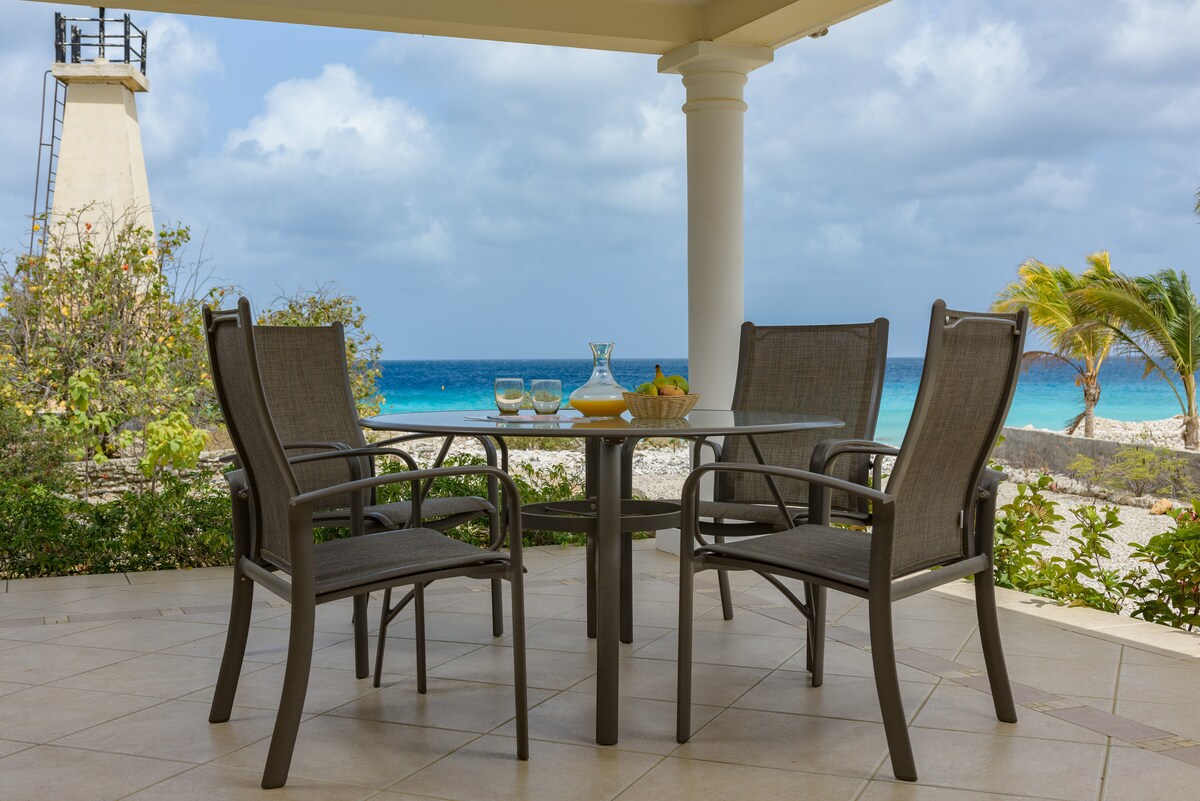 The 2500sqft 1st floor apartment is close to shopping, grocery and airport (no noise) We are situated on private oceanfront property with walk in beach access. You will have a beautiful two-sided large patio overlooking a beautiful old lighthouse and the ocean. Inside is modern and fully furnished. Great for scuba divers and snorkelers, sail-boarders, wind-surfers, sun worshipers, adventurers or just chilling. Check-in is 4pm 3rd bedroom can convert from 2 singles to a king bed upon request